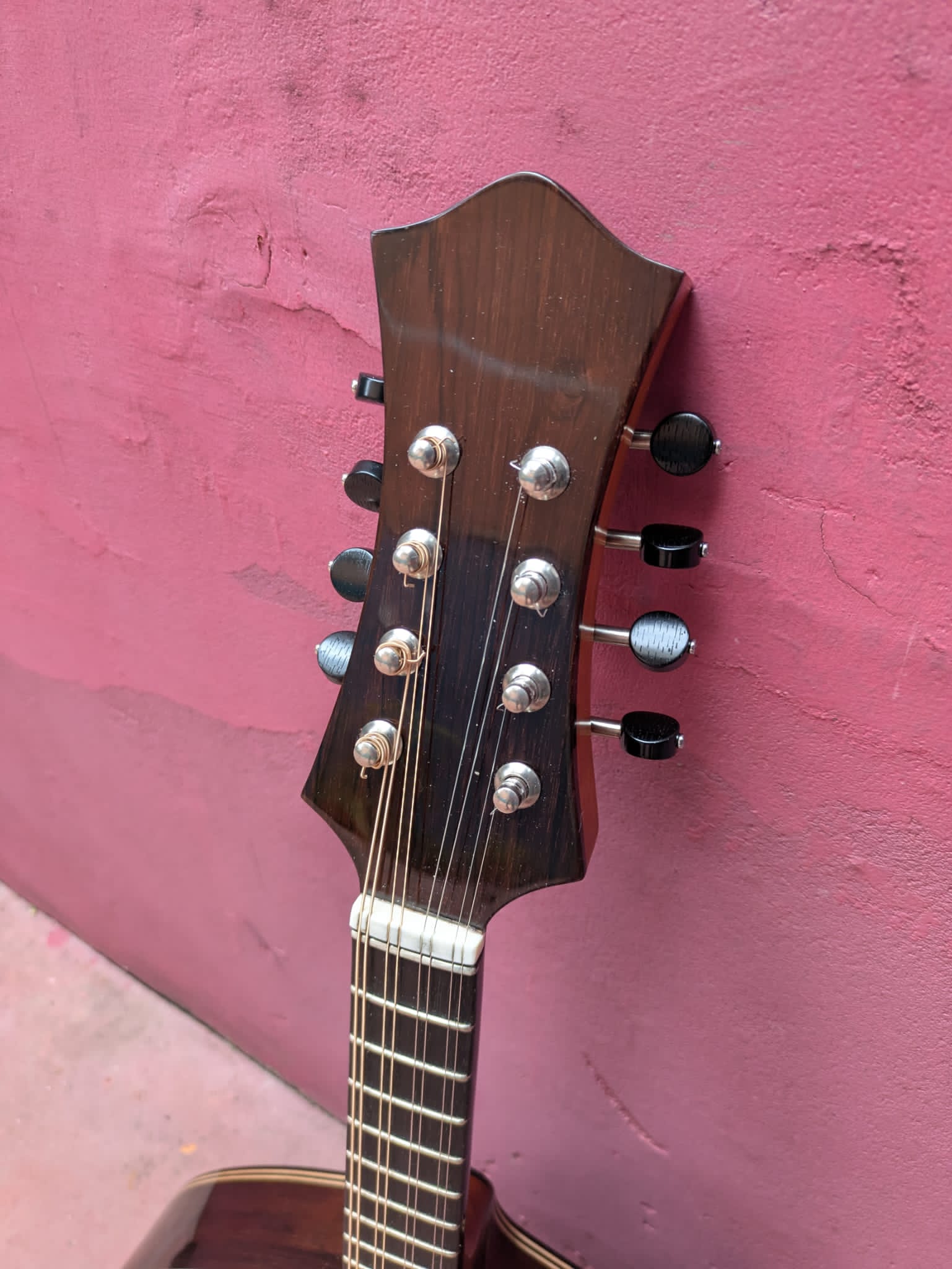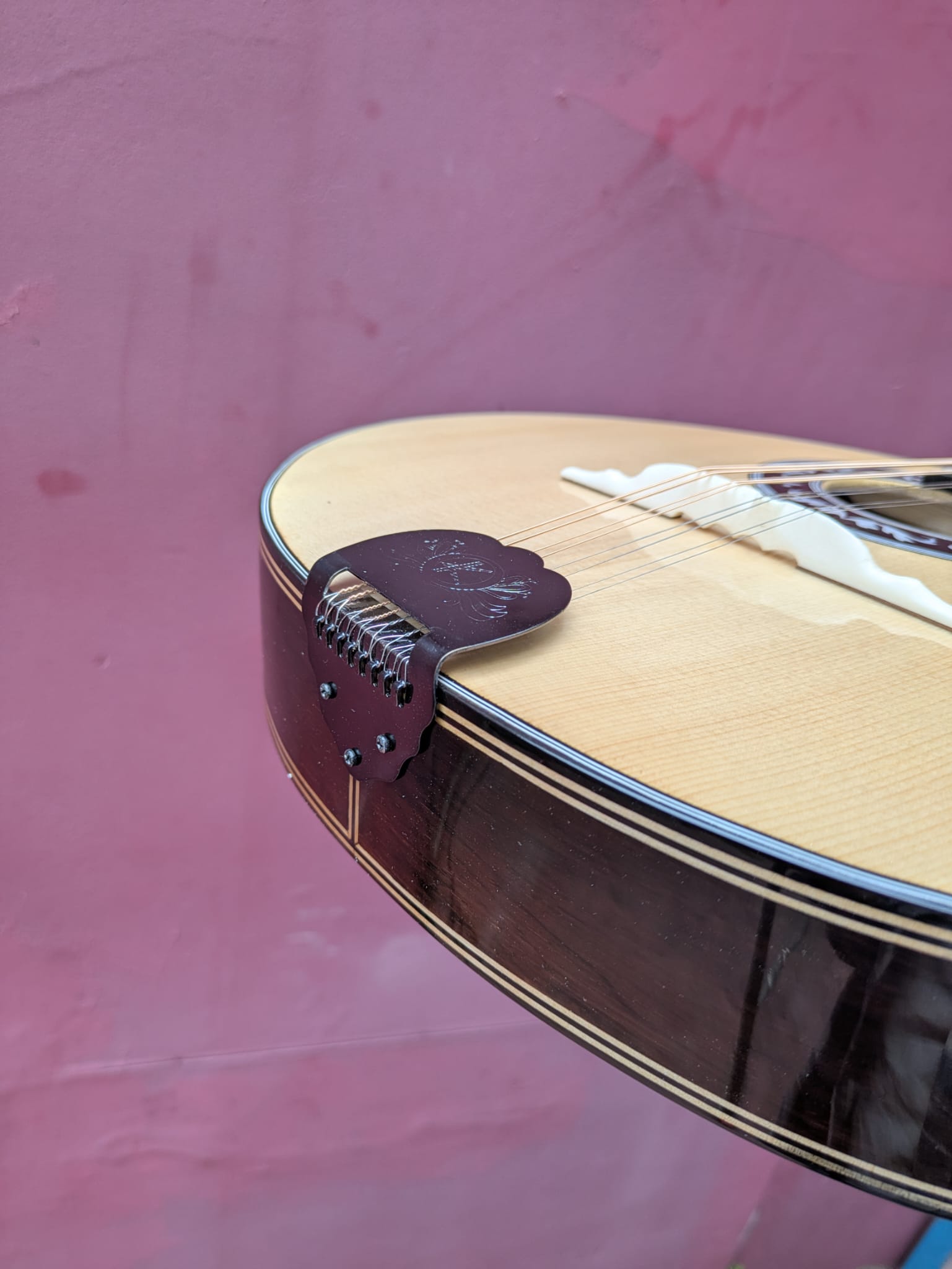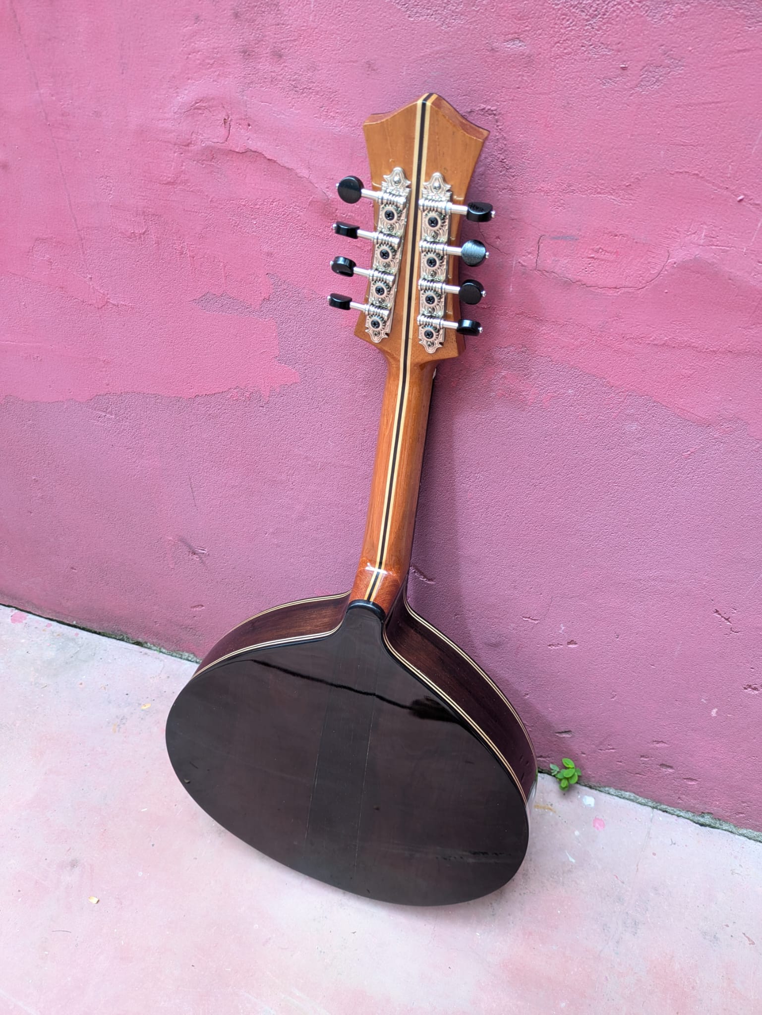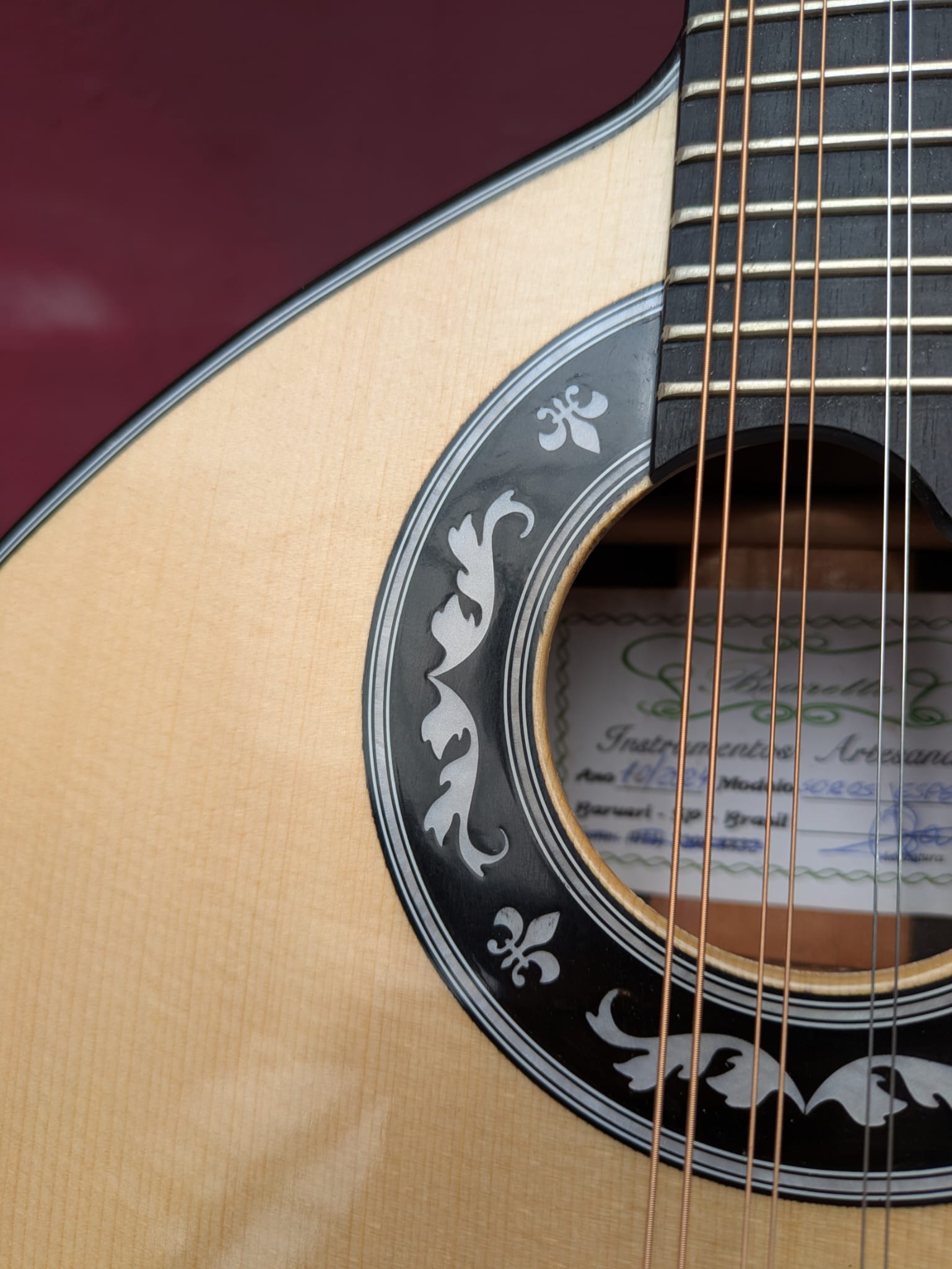 This is the second bandolim we've had in the shop made by Osvaldo Boaretto Junior. The first one sold before we could even list it here! Although the name Boaretto may not be familiar, the luthier's father (and namesake) was one of the founders of, and partners in, "Soros", a well-known company that made stringed instruments in São Paulo throughout the latter half of the 20th century. Hence the name of this particular model, "Soros Especial". (Note, however, that this is not a Soros instrument. It is much better than most Soros' we've seen.)