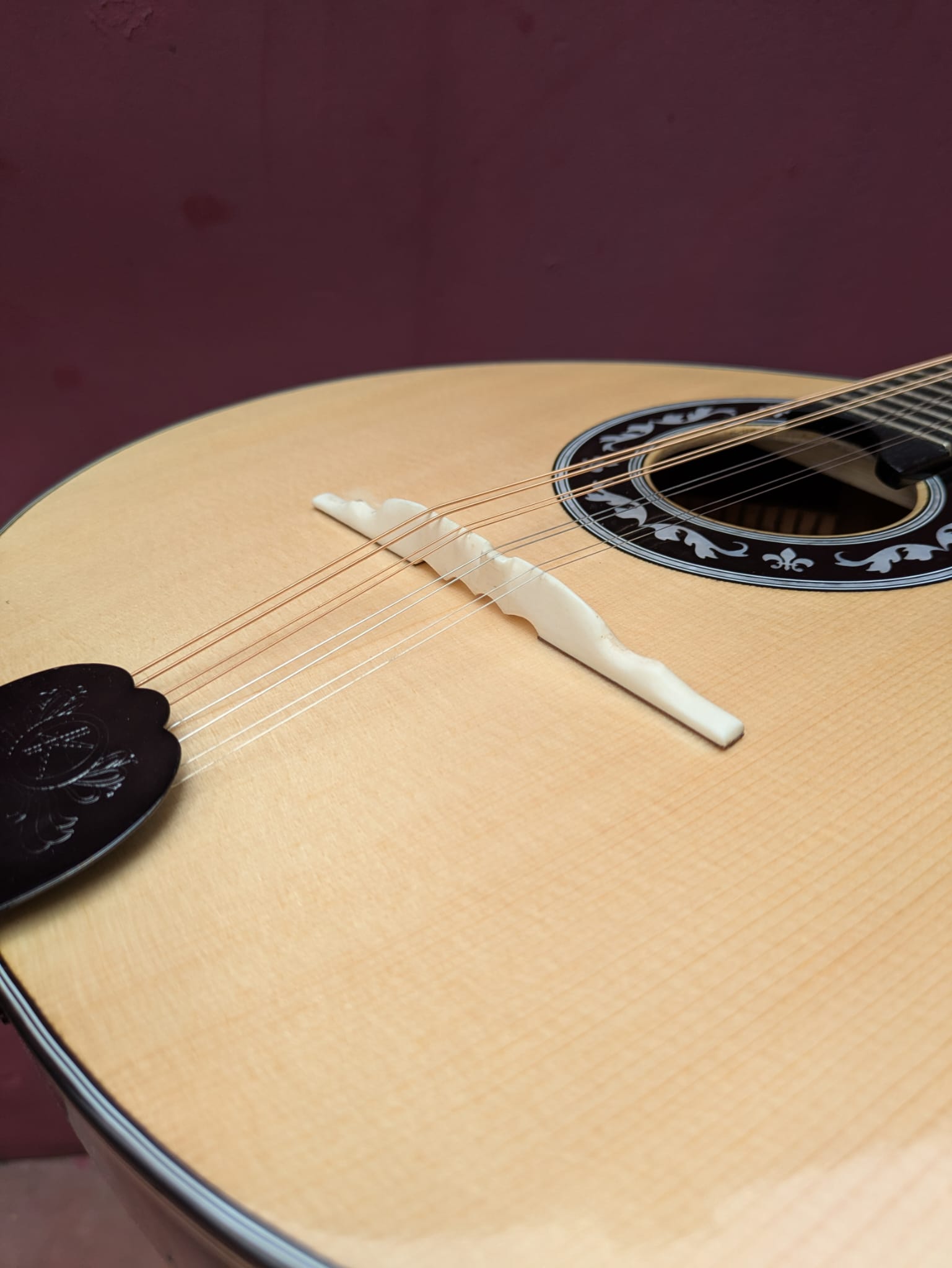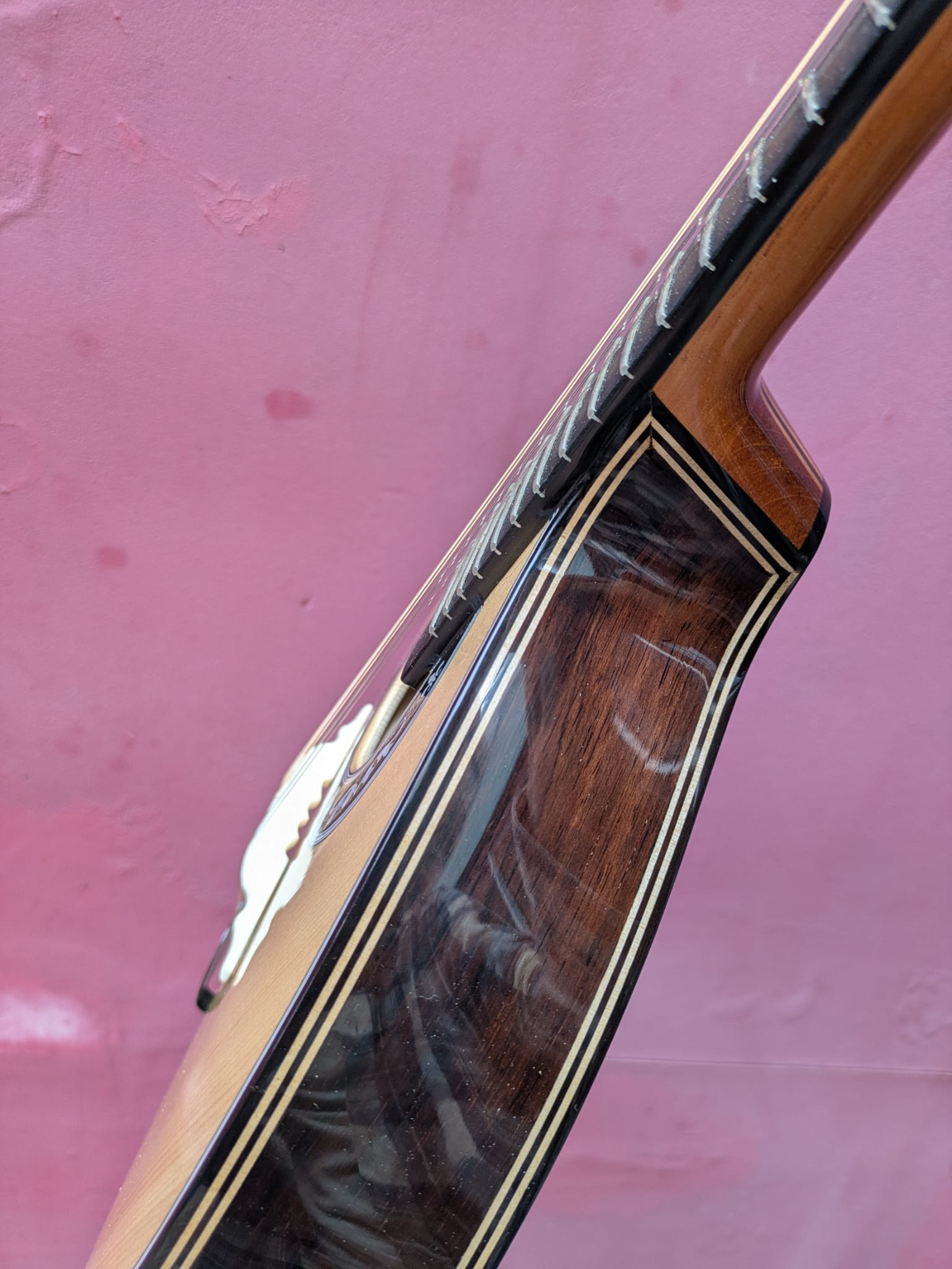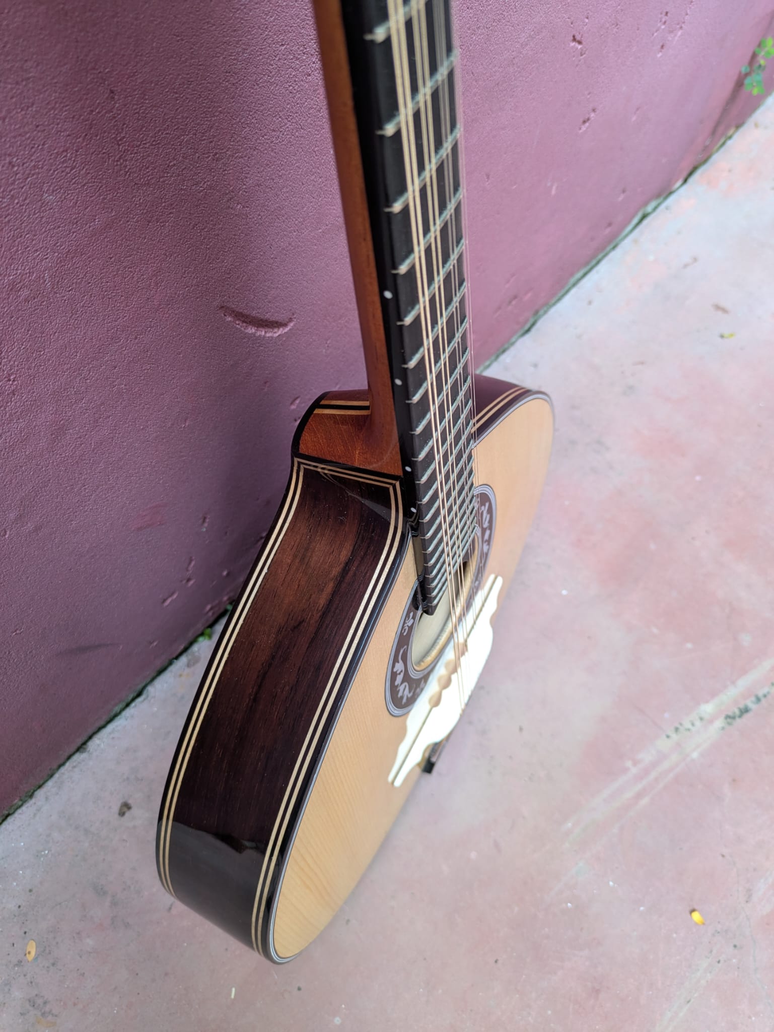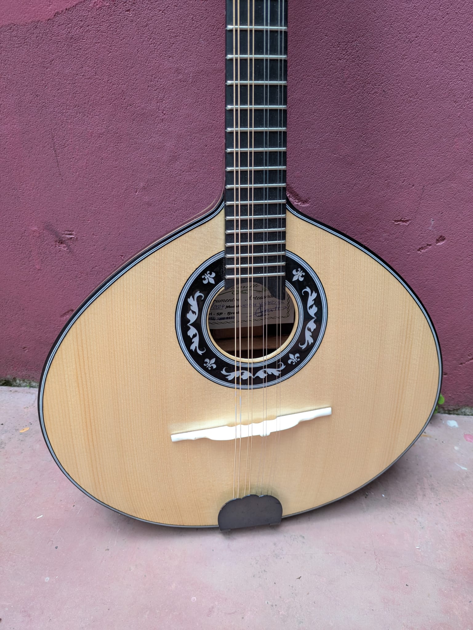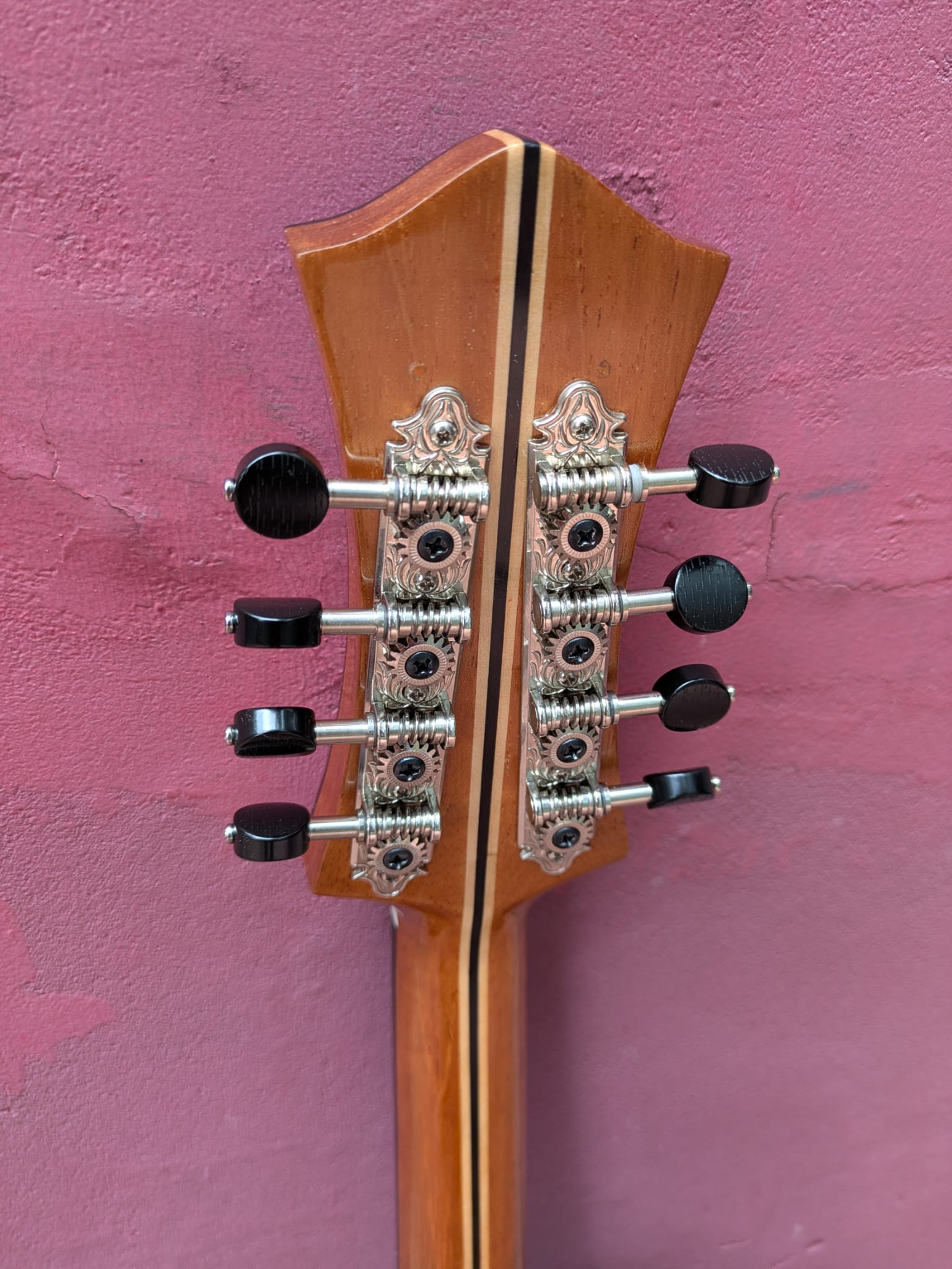 This is the second bandolim we've had in the shop made by Osvaldo Boaretto Junior. The first one sold before we could even list it here! Although the name Boaretto may not be familiar, the luthier's father (and namesake) was one of the founders of, and partners in, "Soros", a well-known company that made stringed instruments in São Paulo throughout the latter half of the 20th century. Hence the name of this particular model, "Soros Especial". (Note, however, that this is not a Soros instrument. It is much better than most Soros' we've seen.)