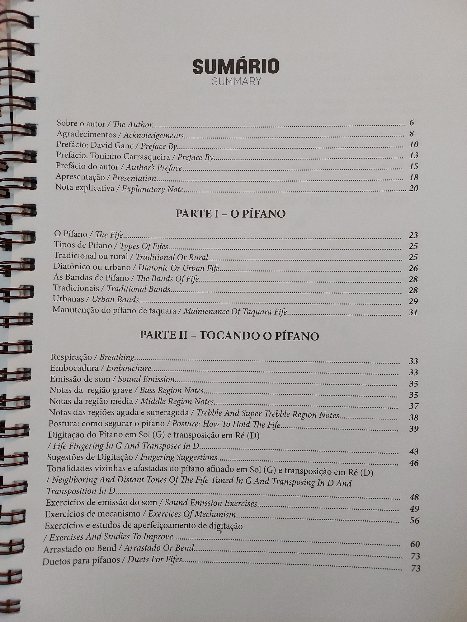 The book, written in both Portuguese and English, brings together techniques, studies, and Alexandre's experience with the instrument. See the photos below for some snapshots of the book's contents.