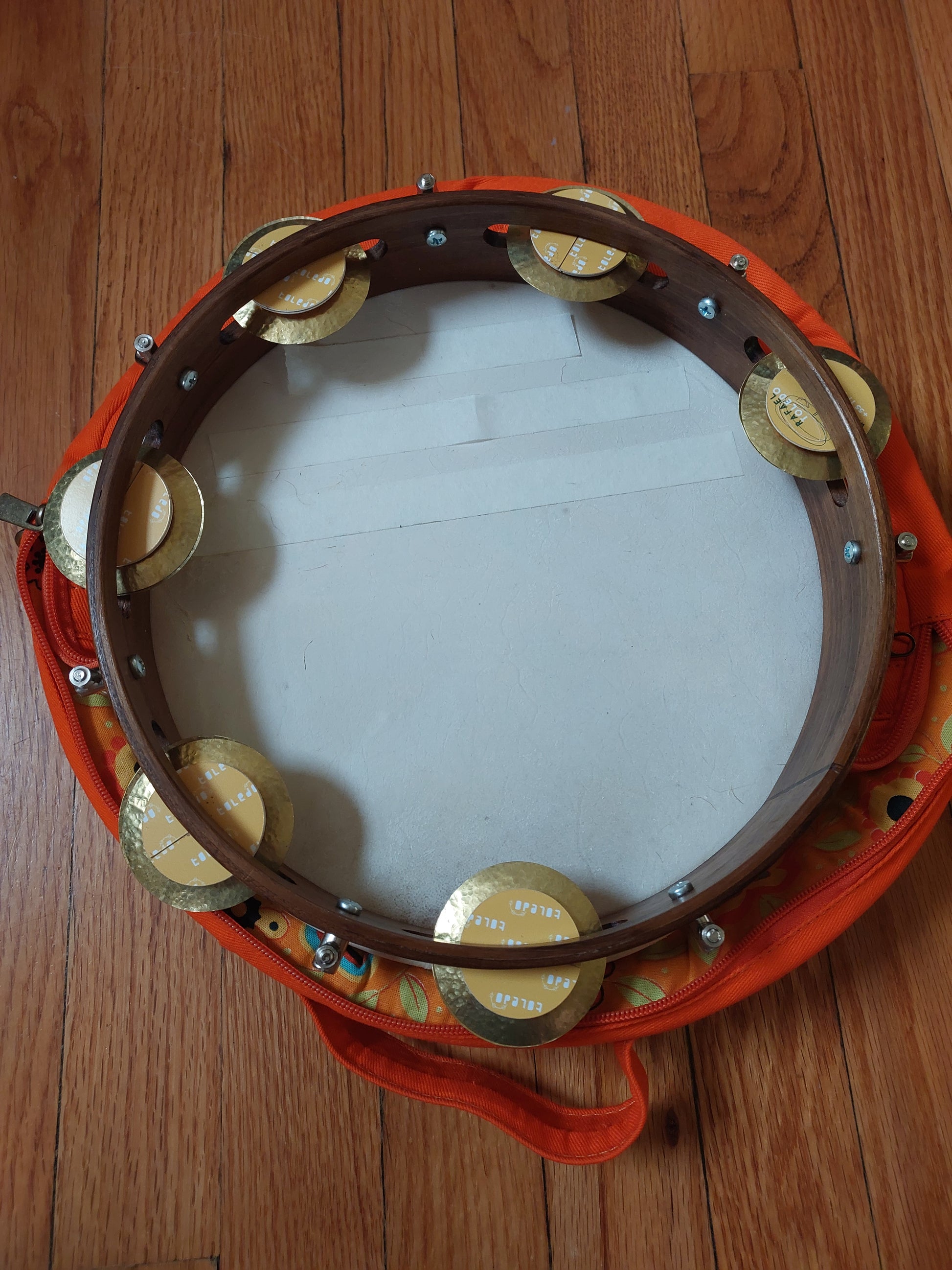 2024/2025 (new) pandeiro by Rafael Toledo for choro and samba. Imbuia wood rim, goat skin leather head, handmade hardware & hand-sewn gig bag. Rafael is the most in-demand maker of pandeiros in Brazil today, as well as a top percussionist.